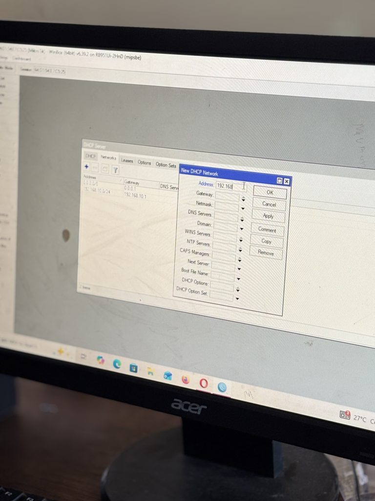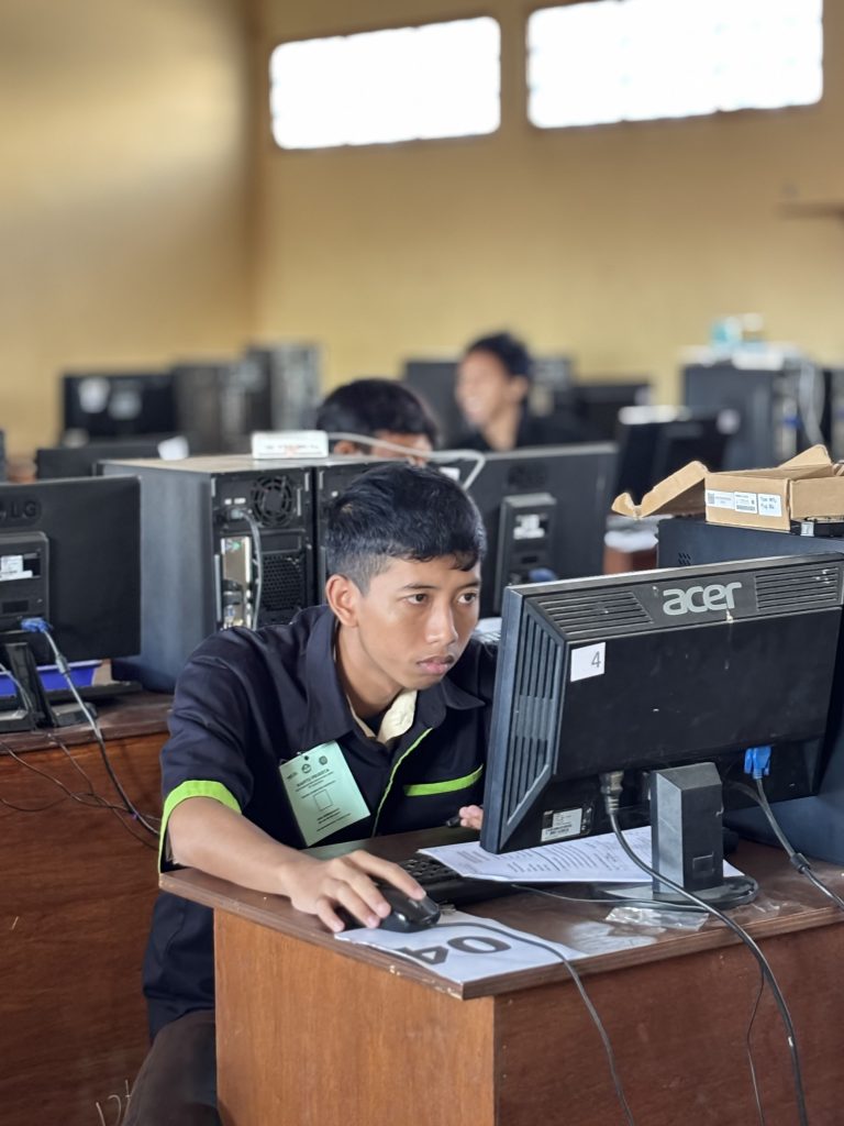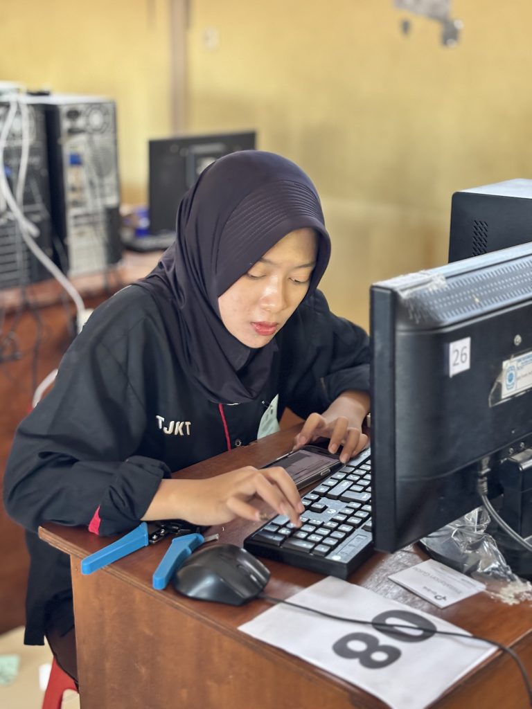Adapun materi yang diujikan pada UKK TJKT kali ini meliputi kemampuan teknis inti, yakni crimping kabel internet serta konfigurasi Mikrotik untuk membangun layanan DHCP Server. Melalui materi tersebut, peserta diuji pada aspek ketelitian pemasangan konektor jaringan, pemahaman perangkat dan topologi dasar, hingga kemampuan melakukan pengaturan jaringan agar perangkat klien memperoleh alamat IP secara otomatis sesuai kebutuhan sistem.